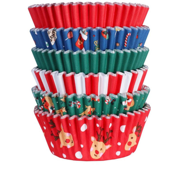 Vidám Télapó mintás, fóliával bélelt muffin poharak. Ünnepi hangulatú muffinok és cupcake-ek készítéséhez, 100 darabos kiszerelésben.