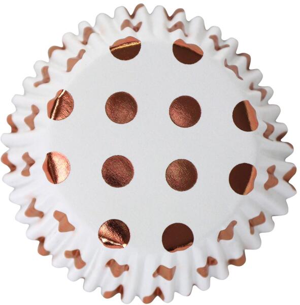 PME Muffin papír - Fehér rózsaszín-arany pöttyökkel 30 db